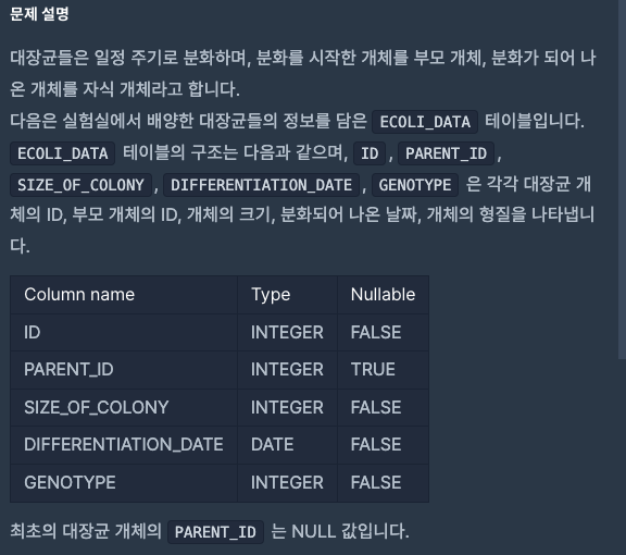 FROM ECOLI_DATA P LEFT JOIN ECOLI_DATA C ON C.PARENT_ID = P.ID