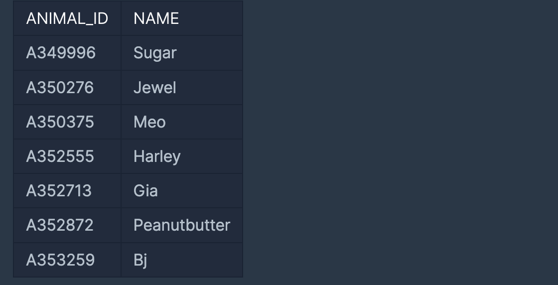 SELECT ANIMAL_ID, NAME