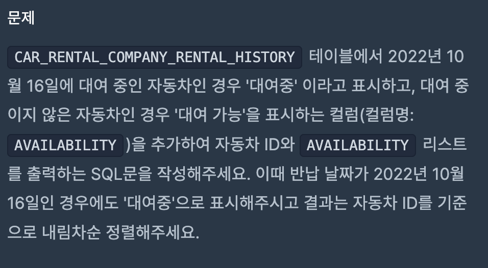 THEN 1 ELSE 0 END) = 1 THEN '대여중'