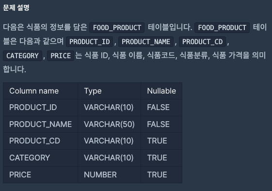 WHERE CATEGORY IN ('과자', '국', '김치','식용유')