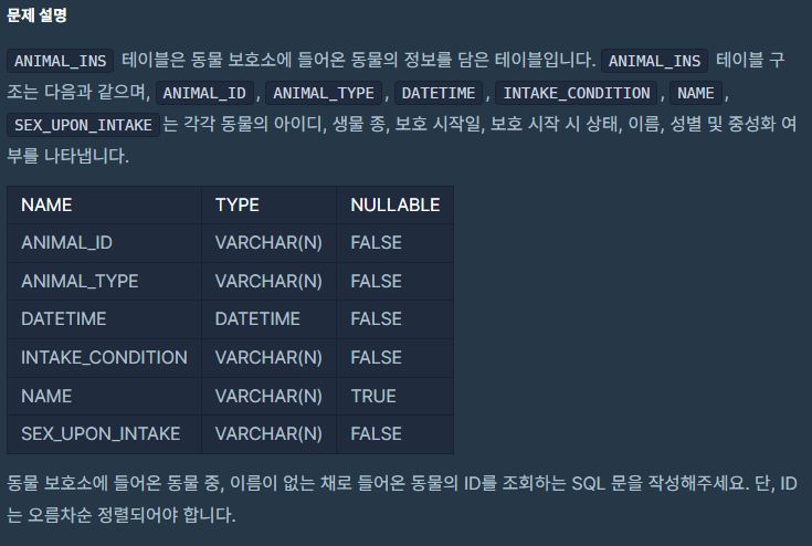 | 프로그래머스 - 이름이 있는 동물의 아이디 (0) | 2025.06.17 |